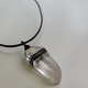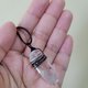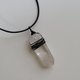 使用天然白水晶,手工绕黑色金属线,配以棉腊绳。