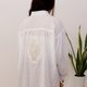 女装 白色全棉织锦上衣欧陆设计上衣款,小尖企领,精致小浮边袖口。