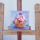 油画浆果甜点。美味的食物。冰淇淋。该画是用油彩在纸板上绘制的,尺寸为14x14厘米。