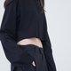 高领短版衫,长宽造型袖,下摆不收边设计,