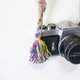 这款手工编织的麻绳相机背带,运用了渐层染色的线材。