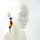 每一只耳环均由高品质的珠子和水晶精心装饰,闪烁着迷人的光彩。色彩鲜艳的红色、蓝色与黄色相互交织,展现出活泼而夺目的风格。流动的线条和细致的刺绣技艺,为耳环增添了华丽的层次感,让每一个细节都散发出无与伦比的艺术魅力。