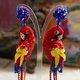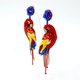 **French Hand-Embroidered Baroque Style Red Macaw Earrings - Made in Russia**
