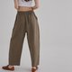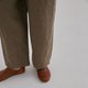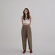 慵懒的茧型裤,在腹部和裤管处做了巧妙的压褶设计,搭配平底皮鞋,穿出effortless style!