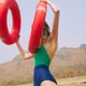 SKITTLES DESIGN one piece swimwear comes in bright two tones color palette.