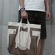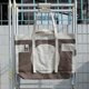 袋身一块布用折叠方式缝制,做出多个收纳间隔,保留原布边。