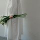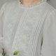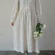 米白色的裙身 胸前用了刺绣、镂空、褶皱等工艺