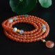 5mm南红樱桃红南红手串手链,也可做项链,珠子皆满色,浓艳似熟透的浆果,色泽均匀无玛瑙条带干扰,在阳光下透出冰糖质感的莹润光晕。四圈缠绕的设计如朱砂璎珞垂落,既保留叠戴的丰盈层次,又因纤细珠径勾勒出古典仕女般的秀雅。