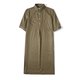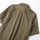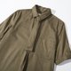 它采用宽松版型和 A 字形剪裁,衬衫领,短袖,果实钮扣开合,左前胸有口袋和侧口袋。