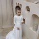 连衣裙的紧身胸衣采用缎面材质,配有长袖和纽扣,内衬采用100%纯棉,穿着更加舒适。饰有珍珠!