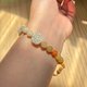 珠饰在蜜糖、柔和琥珀与奶白色调之间变换,如同午后阳光静静洒落在水面上。玉兰花坠饰为整体造型增添一抹温柔与宁静。