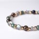 这是此款矿饰“精灵之森”所呈现的意象,轻轻柔柔的配色,整体低调不抢眼,淡灰色拉长石散发着幽光,而灰绿色的绿磷灰石则描绘出森林的轮廓。