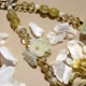 点缀茶水晶玻璃珠、光泽柔润的珍珠与金属花托,