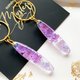 Dangle drop epoxy resin earrings with purple flowers.