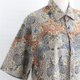 - 春夏峇里岛制欧洲复古90s几何印花宽松中性男女短袖棉质绿色古着衬衫