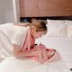 宝宝模式:小蘑菇浴巾也可以当作新生儿包巾,依图示包覆后,最后将专利扣环扣至宝宝脖子后方,就大功告成啰!