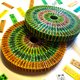浯乡地方妈妈利用回收而来的“四色牌”,折叠拼接变成杯垫、桌垫以及其他各种不同造型的摆饰品,符合环保精神,同时也是美学和逻辑概念的结合。做成锅盘垫,立体厚度达1.6cm,耐热度量好。