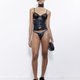 细节上,亮面泳衣面料和机眼绑带设计相互呼应,突显出独特的都市野性性感风格。