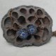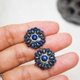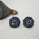 以青金石和夜空般的玻璃珠,精心绣制成宛如花朵般的耳环。