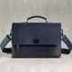 - 苦苦手工掀盖皮革麻布侧背包-深蓝 //商品材质:美洲植鞣皮革、牛仔布、混纺棉布、五金、拉链