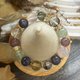 这条由粉晶、绿发晶、紫马粉、绿幽灵水晶、血滴堇青和钛晶组成的手链,具备以下综合功效:
