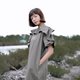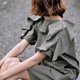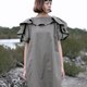 { Frill around the neck and short sleeve }