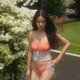 无肩带比基尼,胸前系带更添可爱,下摆系带比基尼细节,腰部系带,性感十足,收紧身材,更显身材曲线。共有两款颜色可选:亮橙、橙色帕洛玛色和粉红,饰有红花痴和粉红色夹心。