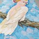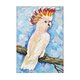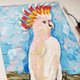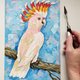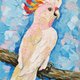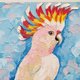 “凤头鹦鹉粉红鹦鹉。” - 使用厚涂技术在纸板上进行的油画。作者 Kokorina Nadezhda 用油画创作的原创作品。颜料涂得厚重而大量,营造出轻微的浮雕感。这幅画是用调色刀画的。
