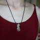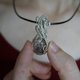 选用优质天然石,纯铜线绕制, 然后用不伤害裸石的氧化液浸泡做旧,再用抛光棒反复打磨,令铜线的效果更立体丰富,最后配上手工编织的项链绳即可。