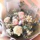 - 由永生花绣球.索拉玫瑰.旱雪莲.兔尾草.干燥满天星制作而成的花束 花束花面宽约37cm 高约45cm(含包装纸) 每款包装及花材不同,花面宽度高度都是抓大概唷~请见谅