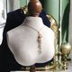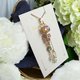 这款手工项链以春天象征的樱花为主题。本项链最大的特色在于 Side*Forest 一针一线手工制作的原创二向色玻璃。从不同角度观看会呈现出不同的样貌,柔和的紫色与金色光辉细腻地变化着。这款玻璃在每次接触光线时,都会展现出闪闪发光、如梦似幻的色彩,仿佛让人回想起盛开的樱花花瓣在风中摇曳的景象。