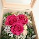 选用日本进口不凋花花材,和干燥花花材混合搭配制作花盒,可将情人节礼物放在不凋花盒内一同赠送,更具浪漫情怀,如果有需要可将放礼物的空间空出来!用不凋花来代表永恒的爱情,是最好的情人节礼物~