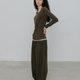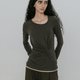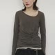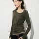 领口斜边设计更有设计感,腰部做了扭结式设计,形成的褶皱量感,下摆和袖口拼接撞色假两件设计,更丰富有层次,简约慵懒调性的上衣。