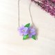 < 手绘立体花紫色桔梗与叶子颈链 >