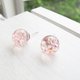 - 淡粉红色流动水晶玻璃球针式耳环 可换耳夹