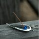 镶在叶片上的蓝色玻璃珠,不仅可作为线香香座使用,澄澈的水蓝色还能为夏日带来一丝清凉感