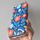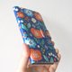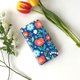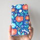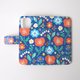 这款手帐型手机壳以鲜艳的深蓝色为基底,搭配着朴实可爱的花卉图案。