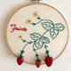 竹制的綉框,亚麻棉布,手綉枝叶、再用羊毛毡做出立体的果实~