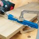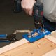 将治具固定在板材上(3"夹具固定),设定Kreg专用斜孔钻头(将止定环洞口对齐于钻头上之刻度)即可施作