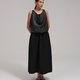 - 中长裙设计,附有可供创意造型的叠层面板