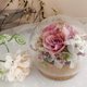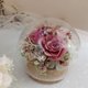 将迷你的干燥玫瑰花装在迷你的玻璃罩中,