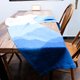 这是不如去作主打的青山系列的一款门帘,由手工蓝染/渐层染制作的蓝染门帘,把亚麻布料在蓝染缸里反复浸泡,清洗,晾晒而成。全部使用天然染料和日晒制作而成。