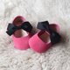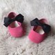 - 桃红色真皮婴儿鞋,适合年龄NB-6M。