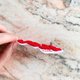 将布料翻面以熨斗熨烫20-30秒,待降温后烫贴会固定在布料上,一定要翻面再加热喔!切勿在正面红色的毛上加热!