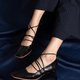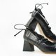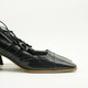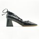 黑色绑带方头中跟鞋 - 高跟鞋 - 真皮 黑色