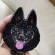 手工制作雪纳瑞犬胸针,以珠饰点缀。 献给爱犬人士的手工礼物。 雪纳瑞犬胸针可用作宠物犬展的号码夹。 以玻璃珠和水晶珍珠手工串珠而成的宠物肖像饰品胸针。 黑色的雪纳瑞犬饰品胸针,以珠饰点缀。 尺寸 2.8" x 2.8"。