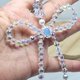 6mm五彩奥地利花球,6mm白贝珠,搭配浅蓝色琉璃小熊 中间用淡蓝色海蓝宝魔盒链接 海蓝宝 被用作平衡、清理和激活喉轮的工具。 帮助平静喉咙和颈部的压力,促进正确的沟通,提升信任和自信心,增强与他人的沟通能力