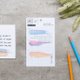**具透明感的便利贴。利用材质特点,在重复堆叠黏贴时,可营造出水彩渲染、手绘之效果,书写之余也能美化手帐。**