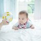 用手摇一摇、转一转的训练手眼协调能力,同时也在宝宝的脑中建构了立体概念,小小的刺激手部肌肉有助大脑发展。