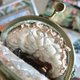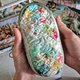 眼镜盒上装饰有陶瓷贝壳与天然石珠。